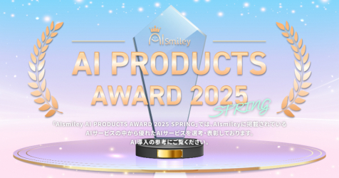 AIポータルメディア「AIsmiley」を運営する株式会社アイスマイリー(東京都渋谷区、代表取締役:板羽晃司)は、メディア運営による問い合わせなどの独自データをもとに選定したAIプロダクトを部門別に「AIsmiley AI PRODUCTS AWARD 2025 Spring」のグランプリとして2025年4月17日(木)に発表しました。