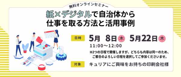 スマホコンテンツ制作ツール「キュリア」を運営する株式会社ミリアド(本社:東京都渋谷区、代表取締役CEO:樋口 清政)は、2025年5月8日(木)/5月22日(木) AM11:00から、印刷業界向けに、紙×デジタルで自治体から仕事を取る方法と活用事例 と題して、セミナーを開催することをお知らせいたします。