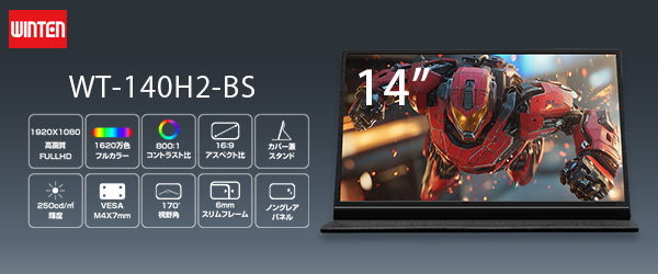 ウィンテン株式会社(本社:東京都豊島区、代表取締役:金川 愛佳)は、人気のモバイルモニター「H2シリーズ」の新モデルとして、VESAマウント対応の14インチモニター「WT-140H2-BS」を発売いたします。