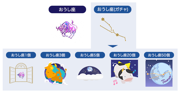「おうし座」ギフトは21カードガチャやミッションで集めることができます。