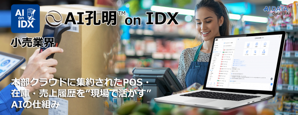 企業データとAIの利活用カンパニー、AIデータ株式会社(本社:東京都港区、代表取締役社長 佐々木隆仁 以下AIデータ社)は、小売業界がデータを“活かす”ことに特化したAI連携型のデータ基盤「AI孔明TM on IDX」を発表しました。