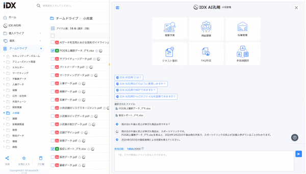 具体的には、各店舗のPOSデータ・在庫履歴・販促報告などをIDXに保存しておくだけで、生成AIが以下のような支援を可能にします。