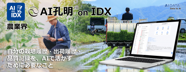 企業データとAIの利活用カンパニー、AIデータ株式会社(本社:東京都港区、代表取締役社長 佐々木隆仁、以下AIデータ社)は、農業従事者がデータを“活かす”ことに特化したAI連携型のデータ基盤「AI孔明TM on IDX」を発表しました。