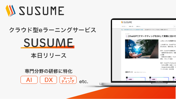 【人材育成に課題をお持ちの方必見】AIやDX、マーケティングなど専門スキルの研修に特化したクラウド型eラーニングサービス『SUSUME(ススメ)』をリリース。人材開発支援助成金にも対応。