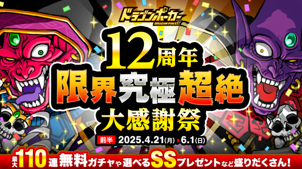 おかげさまで『ドラゴンポーカー』は、2025年5月17日(土)にサービス開始12周年を迎えます。
