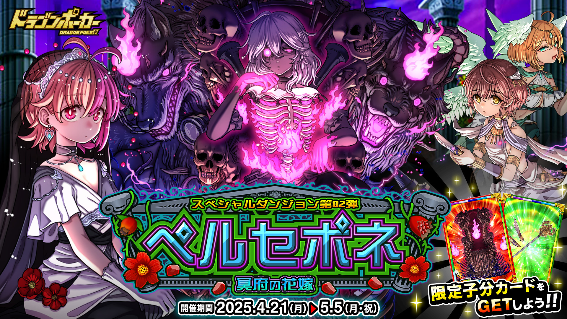 株式会社アソビズム(本社:東京都千代田区、代表取締役:大手智之)は、App Store・Google Playにて好評配信中のリアルタイム合体カードバトル『ドラゴンポーカー』で、2025年4月21日(月)より新スペシャルダンジョン「ペルセポネ 冥府の花嫁」を開催いたします。