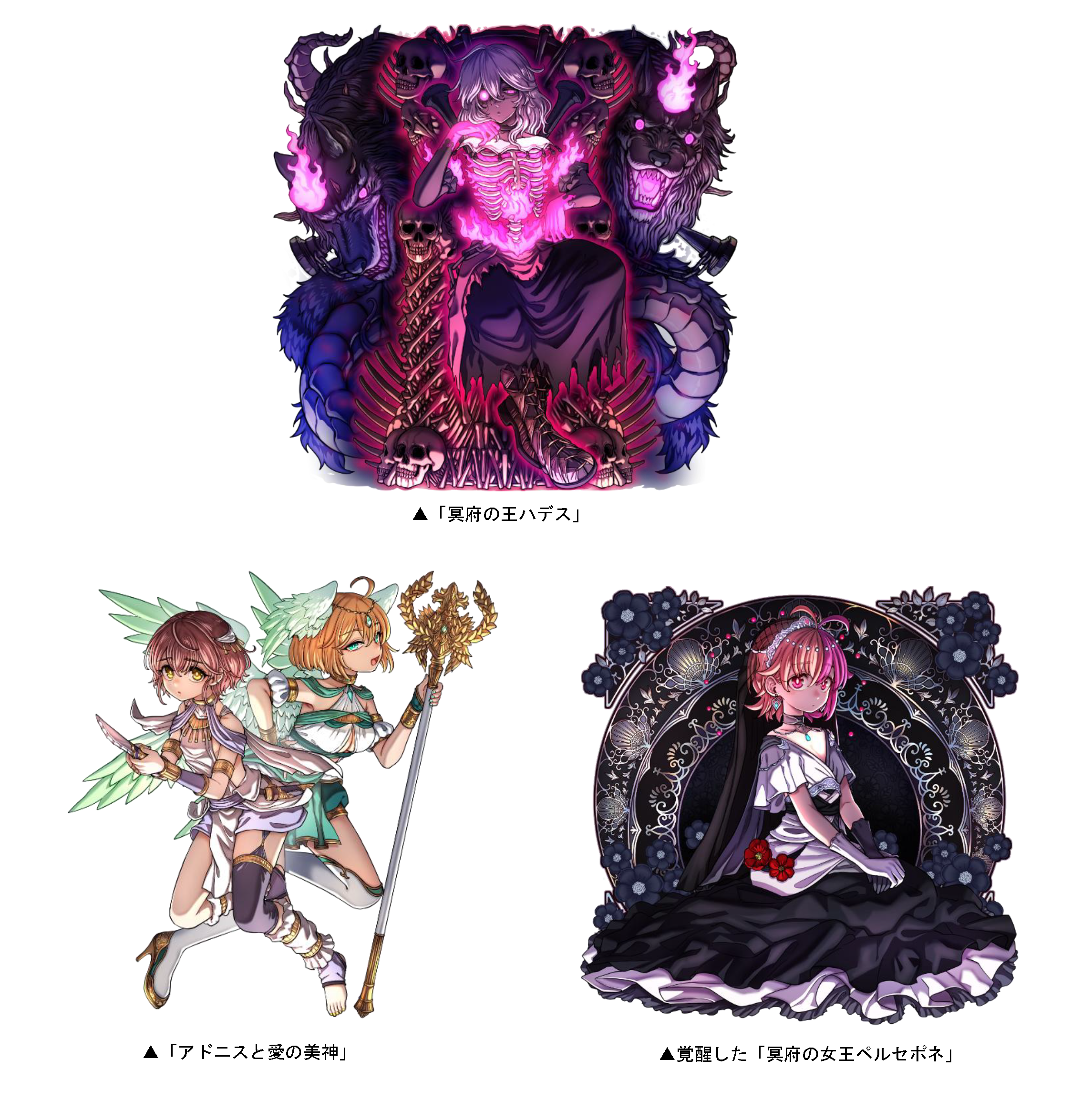 本ダンジョンには、「冥府の王ハデス」「アドニスと愛の美神」、覚醒した「冥府の女王ペルセポネ」が登場!また、クリアした回数に応じて竜石を手に入れることができます。