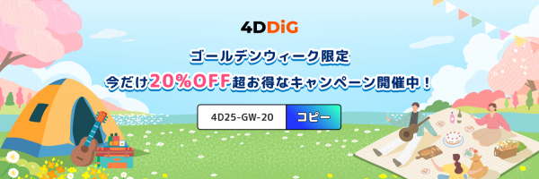 今年のゴールデンウィークは、Tenorshare 4DDiGの全製品が20%OFF!