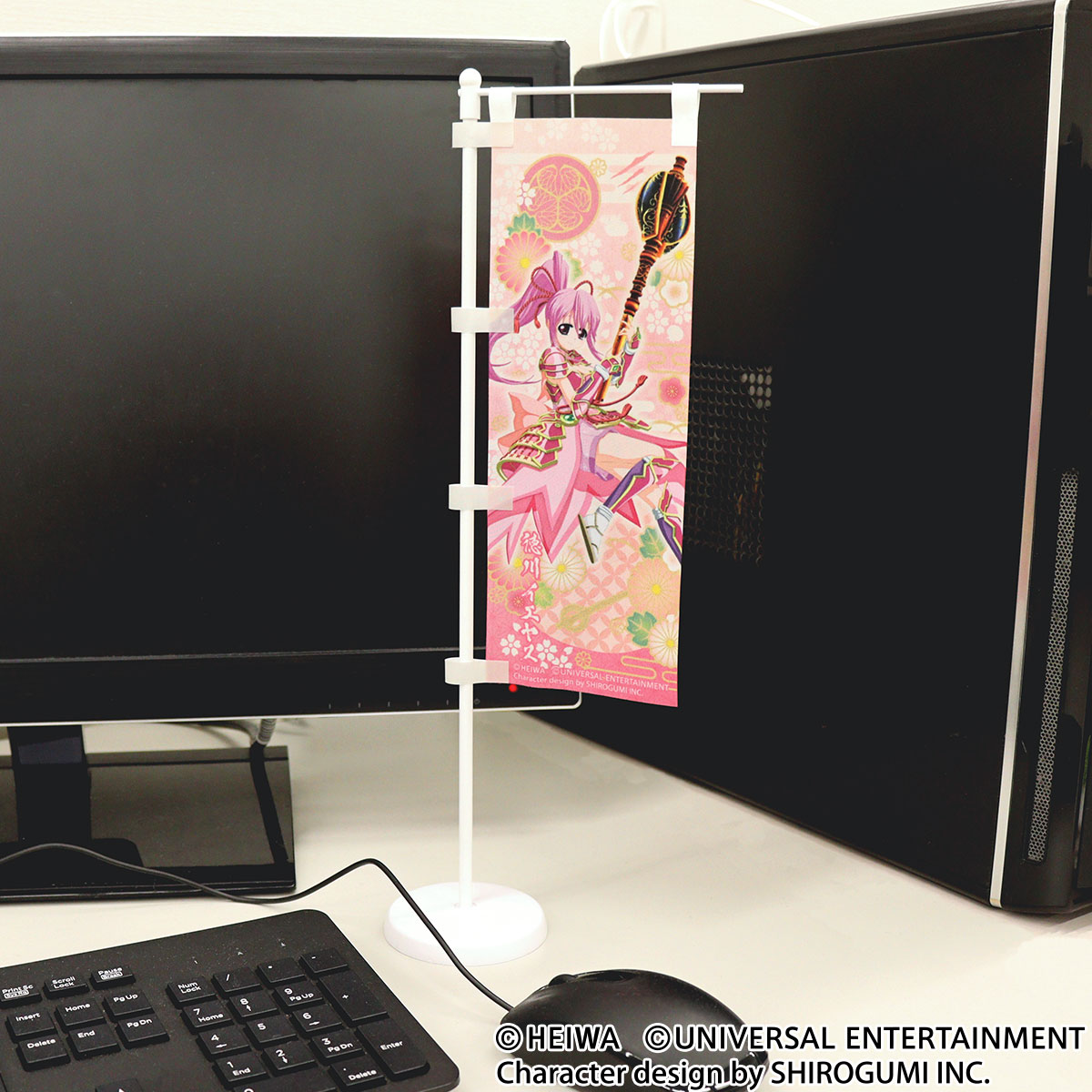 デスクやちょっとしたスペースに置けるミニサイズののぼり。「戦国乙女」のイエヤスがペルセポネのヘカテの杖を持ったデザインです。