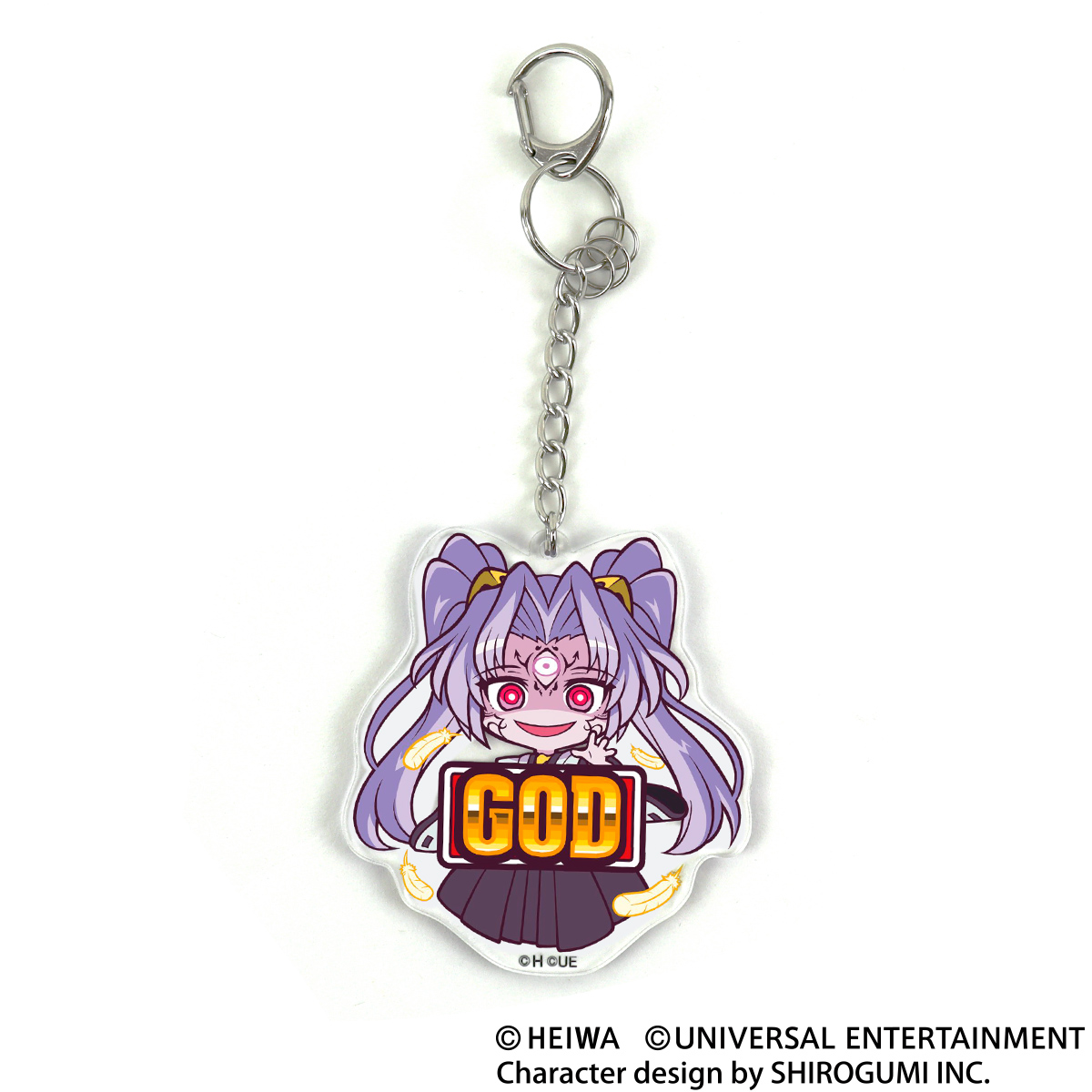 キュイン萌ーるでおなじみのかぎっ娘キーホルダー。「戦国乙女」のカシンとGOD図柄、「南国育ち」の紫織とハイビスカス、「麻雀物語」のパトランランと三尺玉を組み合わせました♪