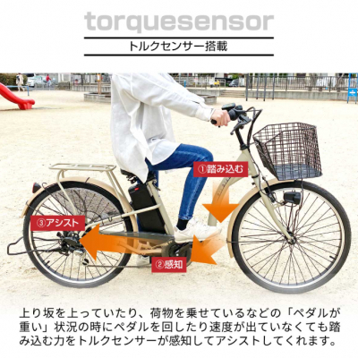 ・アシスト(トルクセンサー式)/電源を切って普通自転車としても走行できます。