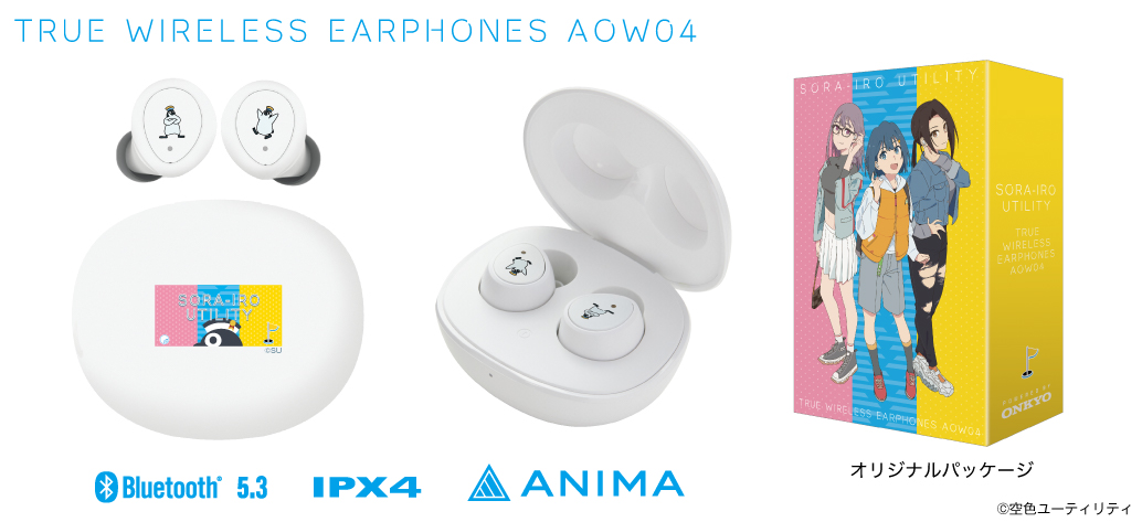 オンキヨー株式会社(所在地:大阪府大阪市、代表取締役社長:大朏 宗徳)は、完全ワイヤレスイヤホン「ANIMA AOW04」とTVアニメ『空色ユーティリティ』※1から「青羽美波」、「茜遥」、「星美彩花」3キャラクターの録り下ろしボイスを搭載したコラボレーションボイスガイダンス搭載ワイヤレスイヤホンを4月25日(金)15:00から受注販売いたします。