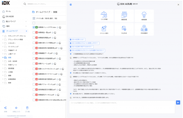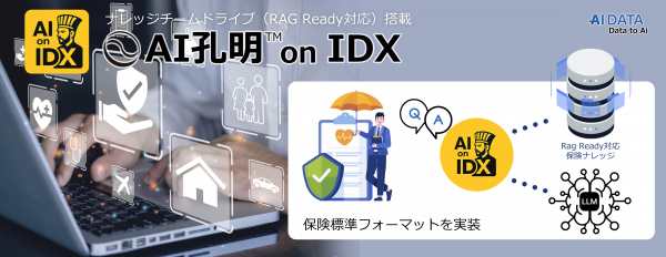 企業データとAIの利活用カンパニー、AIデータ株式会社(本社:東京都港区、代表取締役社長 佐々木隆仁、以下AIデータ社)は、生成AIを業界別業務に最適化する次世代AI基盤「AI孔明TM on IDX」において、保険業界向けナレッジチームドライブ(ナレッジRAG Readyドライブ)をリリースいたしました。