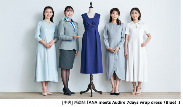 全日空商事株式会社(本社:東京都港区、代表取締役社長:宮川純一郎)は、日本テレビアナウンサーが立ち上げたアパレルブランド「Audire」(アウディーレ)とANAの客室乗務員(CA)との共同プロジェクト「ANA meets Audire」第2弾として、1枚で何通りもの着こなしが楽しめるANA限定カラーのラップドレス式ワンピース「ANA meets Audire 7days wrap dress」を発売します。更に本企画のためにCAが監修した持ち運びに便利な圧縮ポーチが付きます。