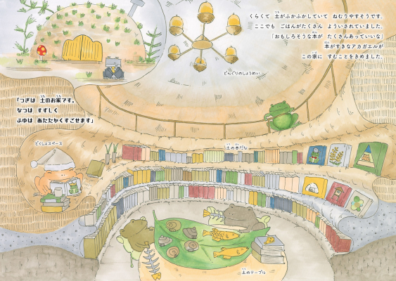 カエルと一緒にお気に入りの家を探しながらエコロジーを考える、学びと発見がつまった絵本です。