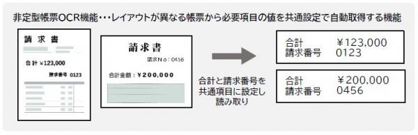 「活字OCRライブラリ」は、各種業務帳票(請求書・納品書など)や企業内の書類(報告書・契約書など)をOCRでデータ化するための組込用ライブラリです。今回のバージョンアップでは、非定型帳票OCR機能を強化し、読み取り可能な帳票レイアウトが増え、認識精度が更に向上しました。販売管理システムや経費精算システムなどに組み込むことで、データ入力業務のさらなる効率化を実現します。