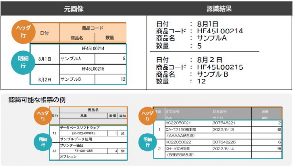 項目名を表すヘッダ行の構造を理解し、明細行を検出する認識の精度が向上しました。これにより、今まで対応が難しかった複雑な構造の明細行の値も認識可能になります。