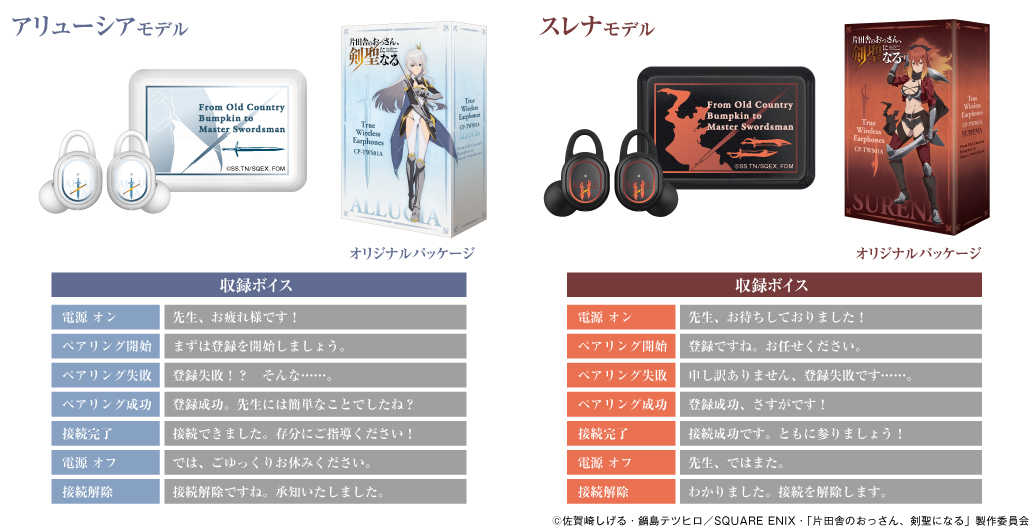 本コラボレーションモデルは「アリューシア・シトラス」モデルと、「スレナ・リサンデラ」モデルの2種類。充電ケース天面、左右ハウジング共に各キャラクターをイメージしたオリジナルデザインとなっており、作品の世界観を表現しました。「アリューシア・シトラス」「スレナ・リサンデラ」による新規録り下ろしボイス搭載のコラボレーションモデルとなっております。