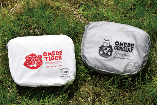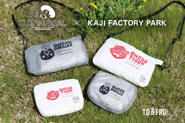 今回の「KAJI FACTORY PARK」オープン記念の限定コラボレーションでは、TO&FROを代表するアイテムで、軽量・高機能な「オーガナイザーエアーXS」と「アルティメットライトショルダーバッグミニ」に、KUTANI SEALの遊び心あふれるデザインを施しました。デザインは2種類で、2023年のワンパークフェスでも人気を集めた「OMEDE TIGER」が復刻。さらに、KUTANI SEAL SHOP10周年を記念して新たに誕生した「OMEDE GORILLAX」も登場し、さりげなく「KAJI FACTORY PARK」のロゴもデザインされています。アイテムカラーは、それぞれのモチーフに最もマッチする色として、透明感のあるCLEAR(クリア)と、どんなコーディネートにもマッチするGRAY(グレー)を選定しています。