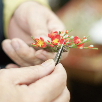 東京都の伝統工芸品「江戸木目込人形」は節句人形も多く作られていますが、愛らしいお人形を引き立てる周りの造花に注目してみたことはありますか? 今回の実演は、1922年(大正11年)に浅草にて創業。100年以上造花製作一筋に、全て手作業で、真っ白な生地、糸の染色から裁断、組み上げ等一貫して造花を作り続けている「岡半」による人形用造花職人による造花の組み立てを実演します。