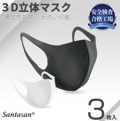 <ネットショップSantasan公式本店>https://santasan.net(運営:日本タイガー電器株式会社)にて、マスク3枚セット(男女兼用 大人用 子供用 白マスク 黒マスク ウレタンマスク ファッションマスク)がキャンペーン価格¥ 280 (税込)にて販売中!