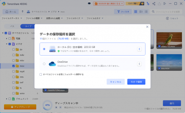 Tenorshare 4DDiGはデータ復旧の専門家です。WindowsとMacに対応しており、様々な状況で失われたデータを復元することができます。AI技術を使用して、失われた動画や破損した動画を復元可能です。