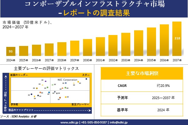 SDKI Analytics(本社:東京都渋谷区)は、このたび、2025年04月24に「コンポーザブルインフラストラクチャ市場調査レポート:2025-2037年の市場規模、シェア、傾向の予測」を発表しました。コンポーザブルインフラストラクチャに関する市場調査レポートには、統計的および分析的アプローチを使用した予測評価が含まれています。この調査レポートでは、一次および二次調査方法を使用して分析された主要な業界洞察を通じて将来の傾向を理解できるようにすることで、主要な市場動向を読者に説明しています。