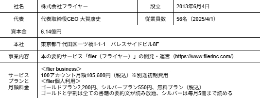 flierは、1冊10分で読める「本の要約サービス」です。ビジネス書の新刊や話題のベストセラー、名著の要約をウェブ、アプリで毎日公開。AIを使った音声版もあります。収録書籍数は3,900冊超、累計会員数は125万人、累計法人導入社数1,200社を突破しました(2025年4月現在)。
