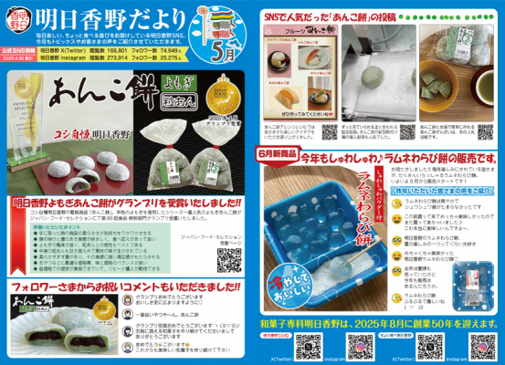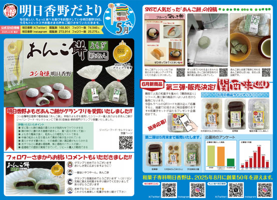 「明日香野だより」は、弊社とお取引いただいている関係者様に、SNSで見かけた弊社商品に関するお客様の反応やその時期に起こった出来事などをお知らせしている広報誌です。毎月1日頃発行しています。