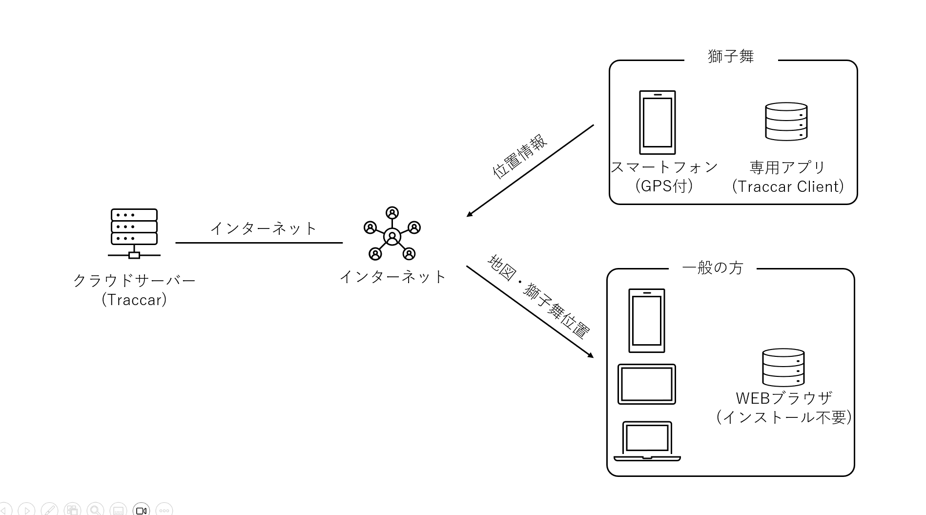 ・獅子舞の演者が持つスマートフォンから位置情報を収集するデータサーバーの構築・運用