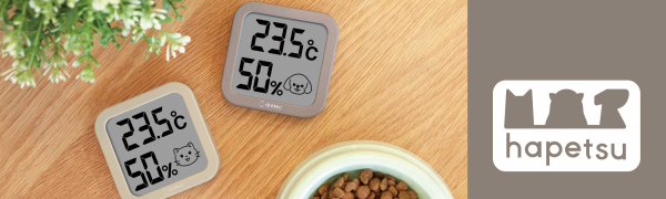 ペットの健康は、環境の「温度」と「湿度」管理から。この温湿度計は、ペットが快適に過ごせる範囲を一目で確認できる「快適度アイコン」付きで、飼い主さんの“ちょうどイイ”をサポートします。