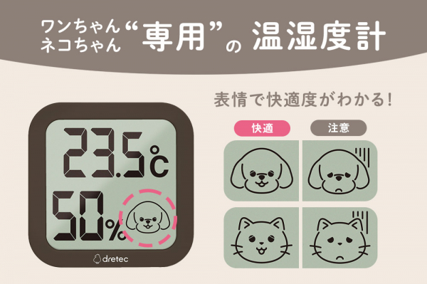 ちょうどイイがわかる ワンちゃん、ネコちゃん“専用”の温湿度計 ここちイーワン(O-443DPT)/ここちイーニャン(O-444DPT)