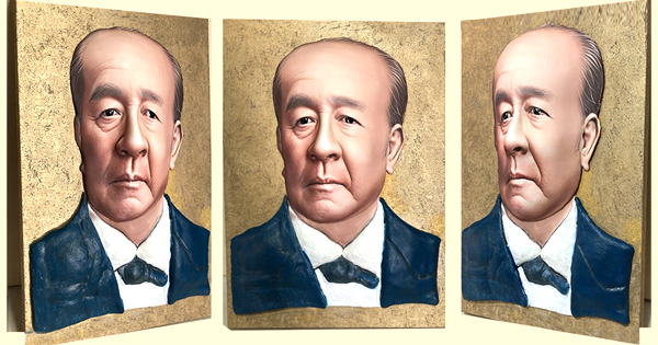 「渋沢栄一立体肖像画」は、新しい1万円札で使用されている渋沢栄一氏の画像を参照し、