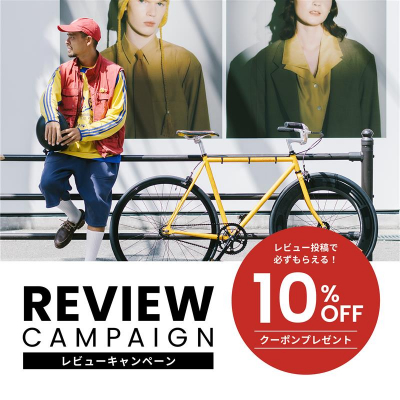 自分のお気に入りの自転車や関連アクセサリーなどがあれば、人にもその良さを伝えたいですよね!そんな情報をみんなでやり取りできれば素敵だな!と考え、このたび期間限定にはなりますが、レビューを投稿いただいた方にもれなくお得なクーポンをプレゼントするキャンペーンを実施いたします。