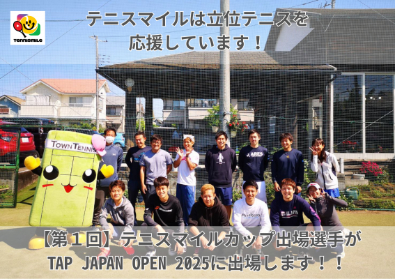 なお、過去にテニスマイルが主催した「第1回テニスマイルカップ」には、今回TAP JAPAN OPEN 2025に出場する選手が2名参加しており、同じテニスを愛する仲間として心から彼らの挑戦を応援しています。世界を舞台に挑むその姿勢に、私たちも深く敬意を表するとともに、テニスを通じてつながる喜びを分かち合えることを誇りに思います。