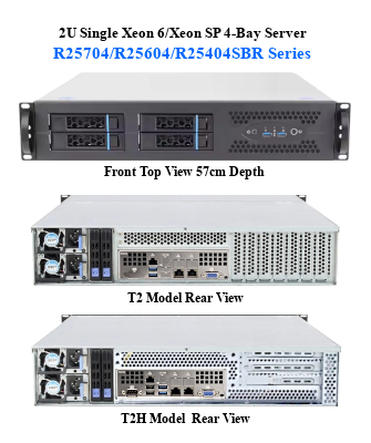 【2U ラックマウント, Intel Xeon 6700P/6500P CPU, Intel SoC PCH, 4*3.5/2.5” 12G SAS/SATA可脱着ベイ, 1*G5 PCIe/CXL2.0(X16)ダブルスロット対応バス, 1*G4 PCIe(X16)バス, 2*10GbE LAN, 1300W/1000W(1+1)冗長化電源】