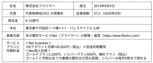 flierは、1冊10分で読める「本の要約サービス」です。ビジネス書の新刊や話題のベストセラー、名著の要約をウェブ、アプリで毎日公開。AIを使った音声版もあります。収録書籍数は4,000冊超、累計会員数は125万人、累計法人導入社数1,200社を突破しました(2025年5月現在)。