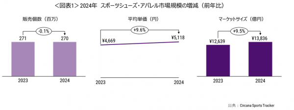 2024年のスポーツシューズ・アパレル市場、平均単価は9.6%増