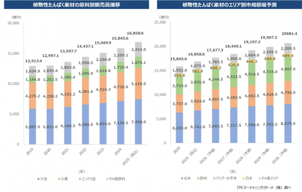 この程、TPCマーケティングリサーチ株式会社(本社=大阪市西区、代表取締役社長=松本竜馬)は、世界の植物性たんぱく素材市場について調査を実施、その結果を発表した。