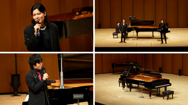 さらに、東京藝術大学楽理科を経て同大学大学院ソルフェージュ科を修了し、現在は、合唱、ミュージカル、ポップス等様々な分野のアーティストと全国各地で演奏活動やソロリサイタルでも活躍中のピアニスト追川礼章との2台ピアノで、ムソルグスキーの『展示会の絵ハイライト』を、まるでコンサートのクライマックスのような迫力で聞かせてくれている。さらに、追川礼章がソロパートで、ショパン『ノクターン20番 嬰ハ短調 遺作』を演奏。追川ならではの美しいピアノの音色が会場に響きわたった。