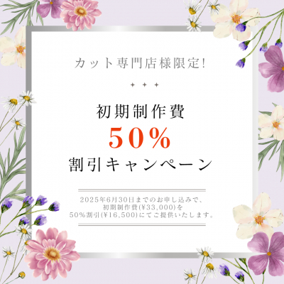 ヘアカット専門店を応援するキャンペーンとして、2025年6月30日(月)までにお申し込みいただいた方を対象に、初期制作費(33,000円)を半額の16,500円でご提供いたします。