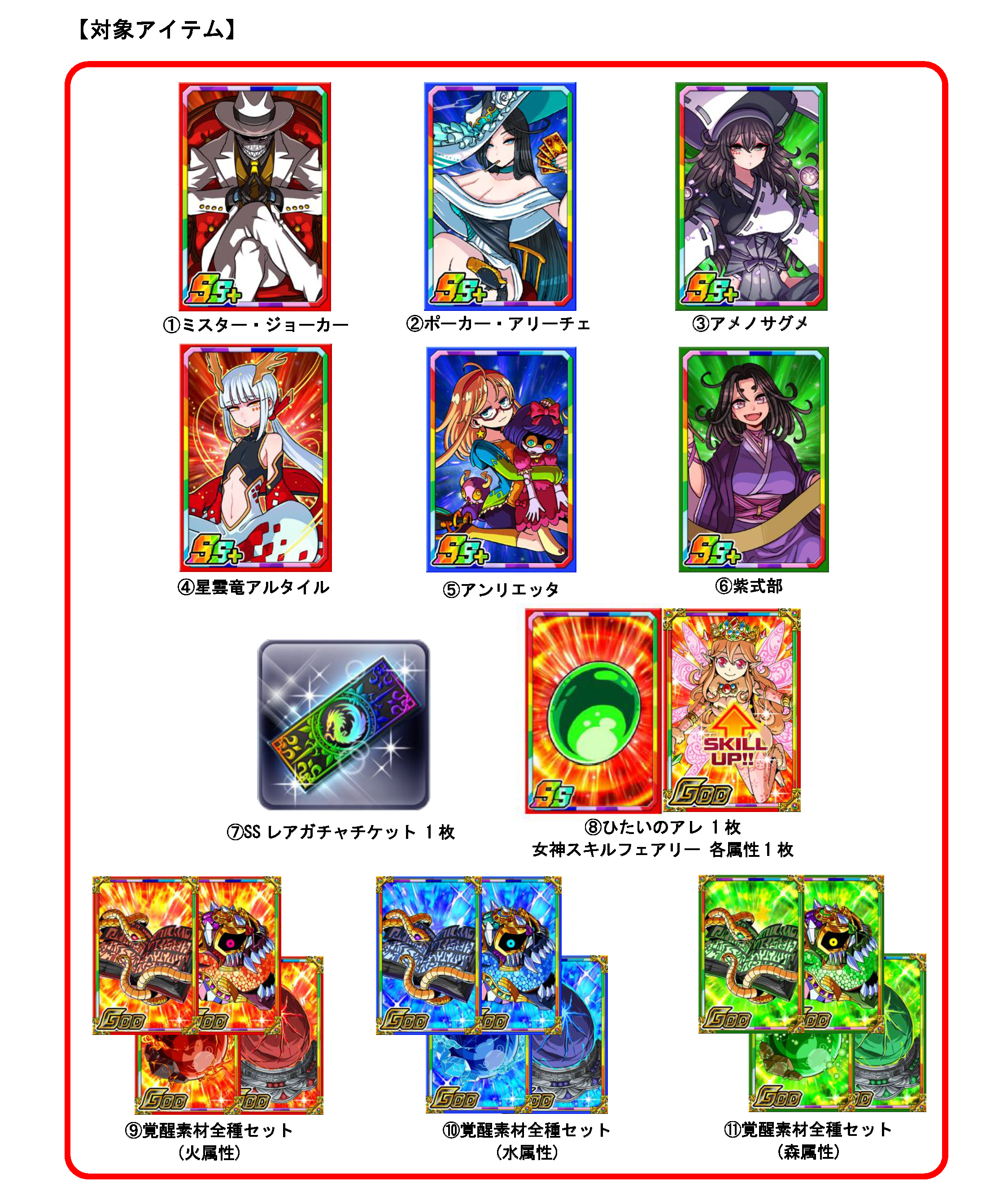 1000リポスト達成:覚醒素材全種セット 各属性3枚