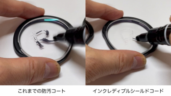これまで「防汚」「傷防止」「超低反射」など5種類のレンズを提供してまいりましたが、この度、東海光学の「インクレディブルシールドコート」(以下ISC)を採用したレンズ2種をお選びいただけるようになりました。