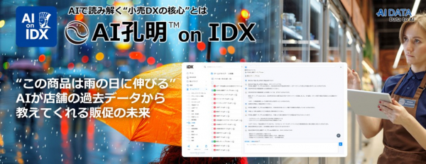 企業データとAIの利活用カンパニー、AIデータ株式会社(本社:東京都港区、代表取締役社長 佐々木隆仁、以下AIデータ社)は、小売業界向けにAIが店舗の過去データから教えてくれるAI連携型のデータ基盤「IDX × AI孔明TM」を発表しました。