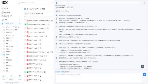 これらをIDXにアップロードすれば、AIが「どの販促が売上に影響したか」「トラブルとの相関はあったか」「似た傾向の事例は他にあるか」などを自然言語でレポートしてくれます。