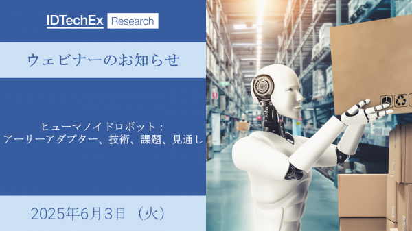 IDTechEx(先進技術調査会社: 本社英国 ケンブリッジ)は、『ヒューマノイドロボット:アーリーアダプター、技術、課題、見通し』と題したウェビナーを、2025年6月3日(火)に開催します。