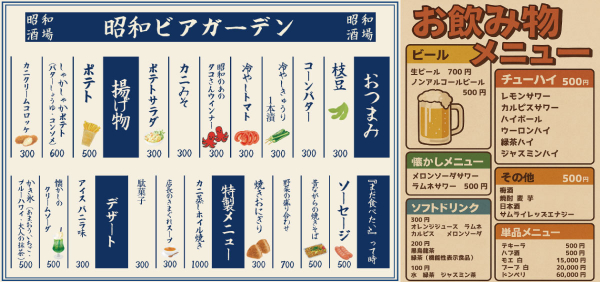 ■昭和時代の雰囲気を楽しめる屋台風ビアガーデン