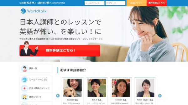 日本人講師がメインのオンライン英会話サービス「ワールドトーク」は2011年にサービスをスタートし、現在300名を超える講師がレッスンを提供しております。
