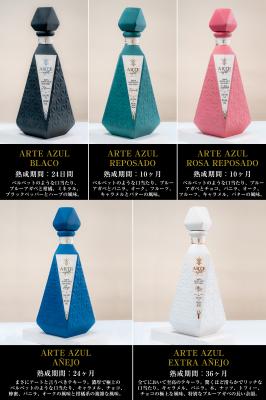 「アルテアズール」は、メキシコの厳選されたブルーアガベを原料とし、職人の情熱と伝統的な製法によって一本一本丁寧に作られたテキーラです。特徴的なボトルは「宝石のような」美しさを追求し、視覚的にも楽しめる逸品として、特別な空間を彩ります。ラインナップは、ブランコ、レポサド、ロゼレポサド、アネホ、エクストラアネホの5種類。厳選したブルーアガベを使用し、伝統的な蒸留工程とフレンチオーク樽での熟成により、個性豊かな風味とアロマを生み出しています。この機会に是非ともアルテアズールをお楽しみください。