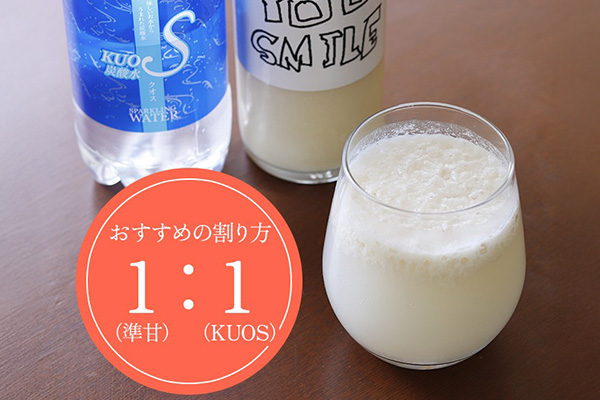 これを強炭酸水『KUOS』と1:1で割ることで、コクのある甘さに炭酸の爽快さが加わり、まるでスパークリングドリンクのような弾ける口当たりが楽しめます。